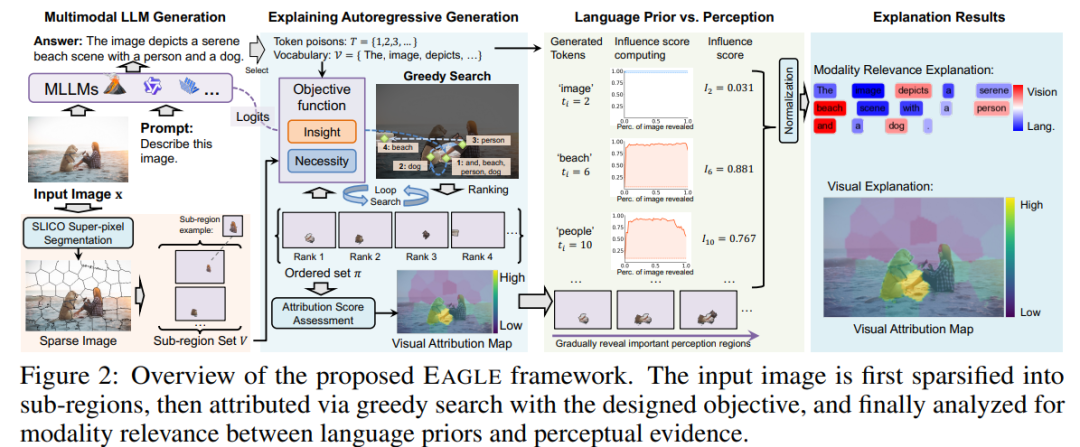 EAGLE(Explaining Autoregressive Generation by Language priors or Evidence)旨在解释 MLLM 在自回归生成过程中的“注意力来源”。