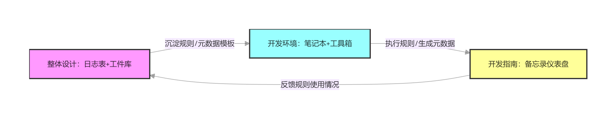 对应逻辑系统的 “开发环境”,承载「笔记本 + 工具箱」,是环境配置、工具调用、元数据处理的核心,面向开发者角色。