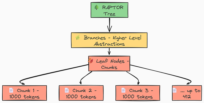 from langchain.text_splitter import RecursiveCharacterTextSplitter# We join all the documents into a single string for more efficient processing.# The '---' separator helps maintain document boundaries if needed later.concatenated_content = "\n\n --- \n\n".join(docs_texts)# Create the text splitter using our LLM's tokenizer for accuracy.text_splitter = RecursiveCharacterTextSplitter.from_huggingface_tokenizer( tokenizer=tokenizer, chunk_size=1000, # The max number of tokens in a chunk chunk_overlap=100# The number of tokens to overlap between chunks)# Split the text into chunks, which will be our leaf nodes.leaf_texts = text_splitter.split_text(concatenated_content)print(f"Created {len(leaf_texts)} leaf nodes (chunks) for the RAPTOR tree.")# Output# Created 412 leaf nodes (chunks) for the RAPTOR tree.