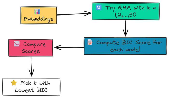 RAPTOR 采取了更科学的方法:使用 GMM (Gaussian Mixture Model,高斯混合模型) 和 BIC (Bayesian Information Criterion,贝叶斯信息准则)。