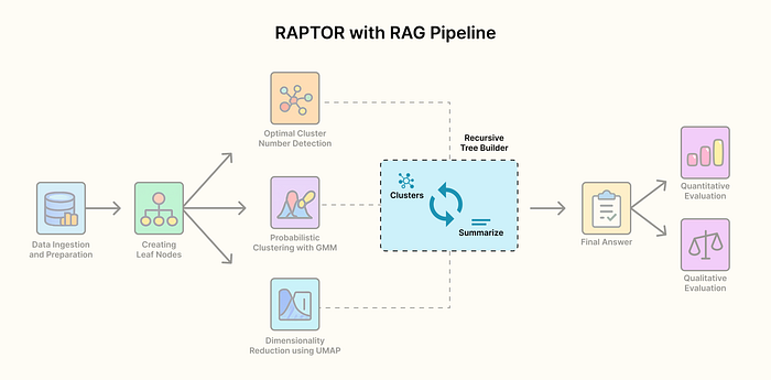 RAPTOR 管道代表了RAG领域的一个重要趋势:从简单的“检索”走向更深度的“知识组织”。它告诉我们,仅仅将文档切块并向量化是不够的,我们必须像人一样,主动地对知识进行分类、摘要和层次化组织,才能真正释放LLM的潜力。