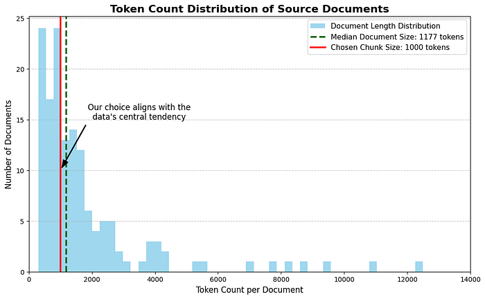 import numpy as np# We need a consistent way to count tokens, using the LLM's tokenizer is the most accurate method.def count_tokens(text: str) -> int: """Counts the number of tokens in a text using the configured tokenizer.""" # Ensure text is not None and is a string ifnot isinstance(text, str): return0 return len(tokenizer.encode(text))# Extract the text content from the loaded LangChain Document objectsdocs_texts = [d.page_content for d in docs]# Calculate token counts for each documenttoken_counts = [count_tokens(text) for text in docs_texts]# Print statistics to understand the document size distributionprint(f"Total documents: {len(docs_texts)}")print(f"Total tokens in corpus: {np.sum(token_counts)}")print(f"Average tokens per document: {np.mean(token_counts):.2f}")print(f"Min tokens in a document: {np.min(token_counts)}")print(f"Max tokens in a document: {np.max(token_counts)}")# Output# Total documents: 145# Total tokens in corpus: 312566# Average tokens per document: 2155.59# Min tokens in a document: 312# Max tokens in a document: 12453