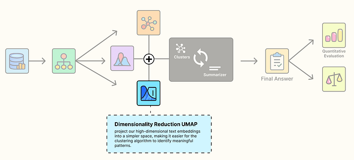 from typing import Dict, List, Optional, Tupleimport numpy as npimport pandas as pdimport umapfrom sklearn.mixture import GaussianMixtureRANDOM_SEED = 42def global_cluster_embeddings(embeddings: np.ndarray, dim: int, n_neighbors: Optional[int] = None, metric: str = "cosine") -> np.ndarray: """Perform global dimensionality reduction on the embeddings using UMAP.""" # Heuristically set n_neighbors if not provided if n_neighbors isNone: n_neighbors = int((len(embeddings) - 1) ** 0.5) # Return the UMAP-transformed embeddings return umap.UMAP( n_neighbors=n_neighbors, n_components=dim, metric=metric, random_state=RANDOM_SEED ).fit_transform(embeddings)