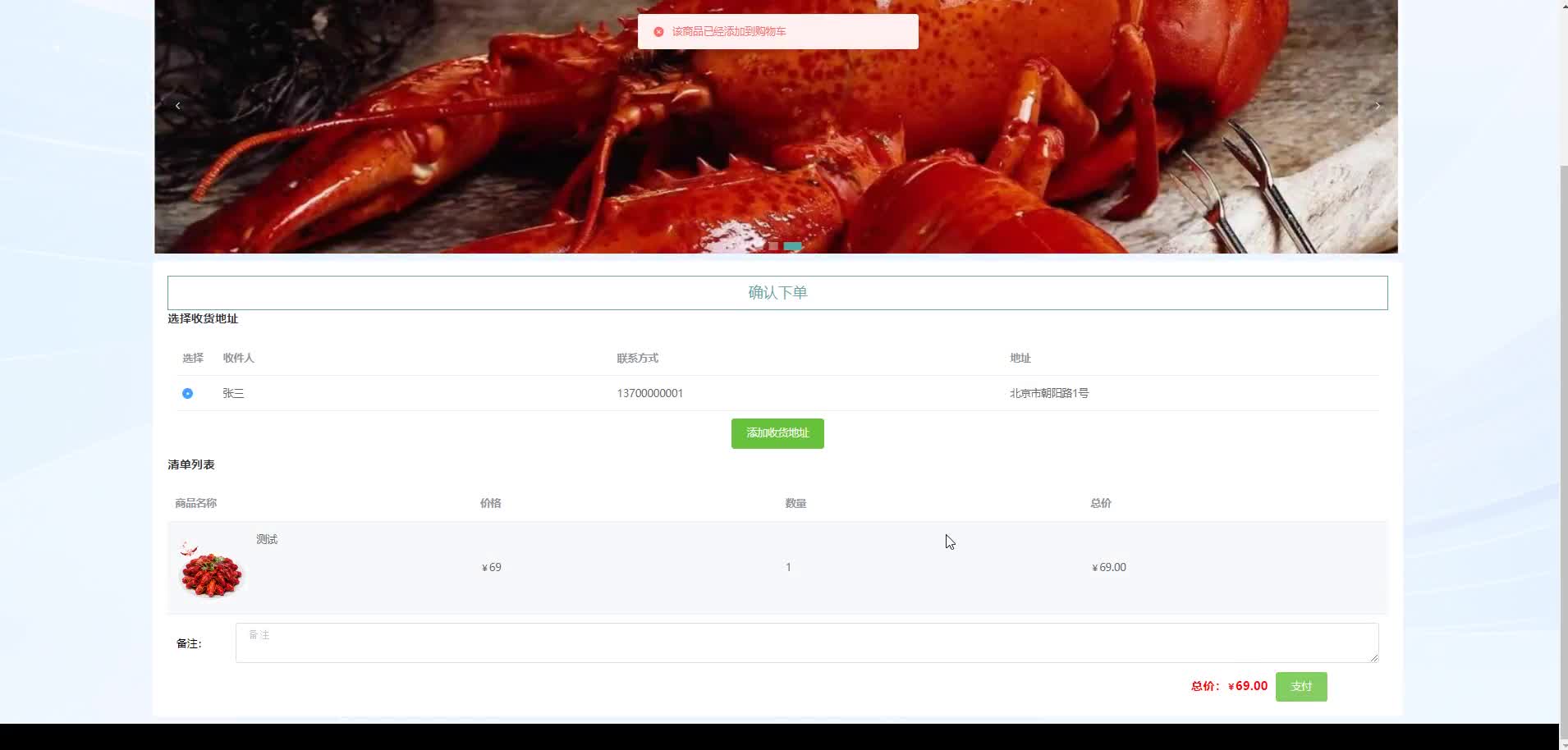 - 订单创建、支付模拟(集成支付宝/微信沙箱)。