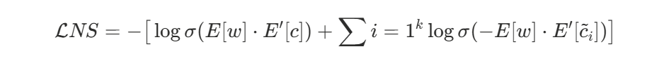 训练目标等价于:让真实共现的 (w,c) 点积变大,让采来的负样本点积变小。