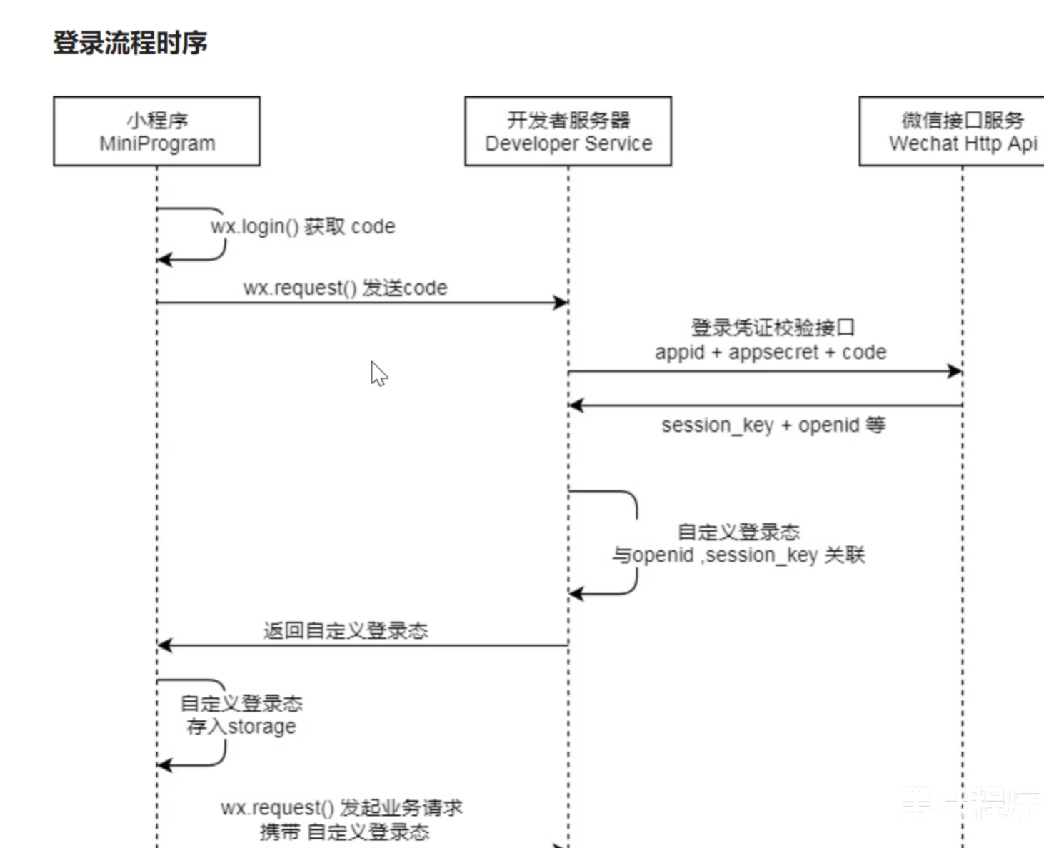 后端需要传appid,app密钥,code,微信接口会返还一个钥匙和id,后端根据这些再生成一个令牌,这样方便后续的业务,通过识别token即可,前端得到token后就可以存储起来,以后每次发送业务请求就能识别了,就和jwt令牌差不多,只不过多了一个获取的步骤。