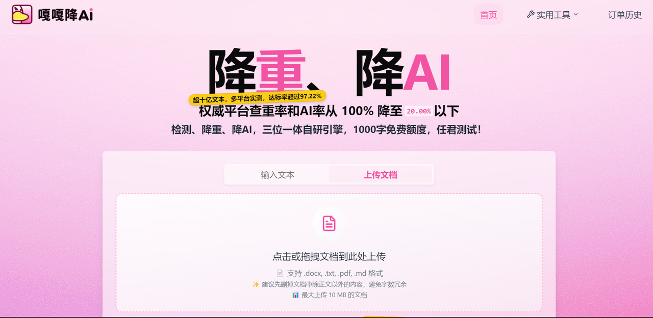 嘎嘎降采用语义重构+改写的技术路线,界面简洁易用,降AI速度也比较快。它支持知网、维普、万方等主流平台的检测标准