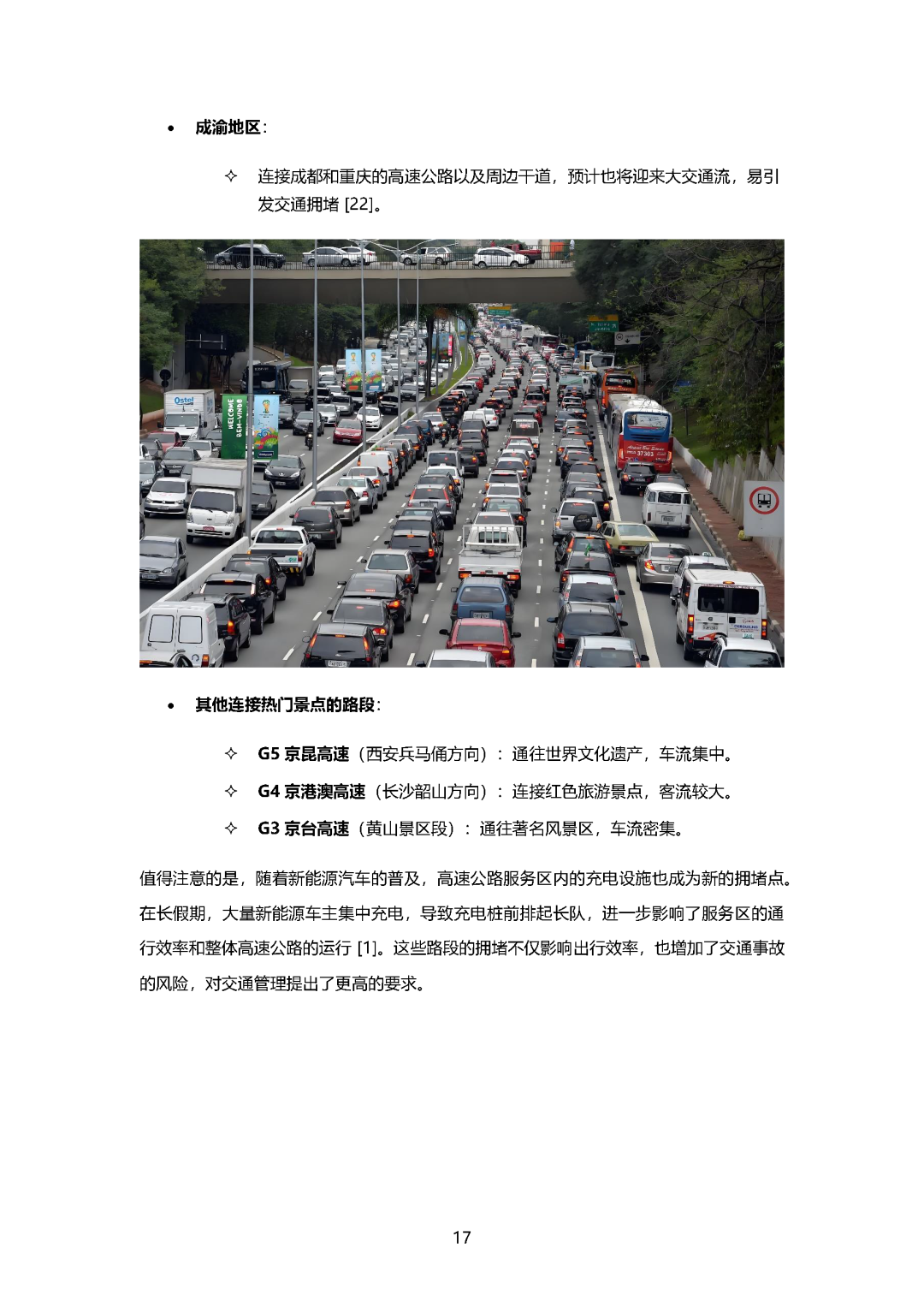 其他:G5 京昆高速西安兵马俑方向、G4 京港澳高速长沙韶山方向、G3 京台高速黄山景区段,且高速服务区充电设施因新能源汽车增多成新拥堵点。