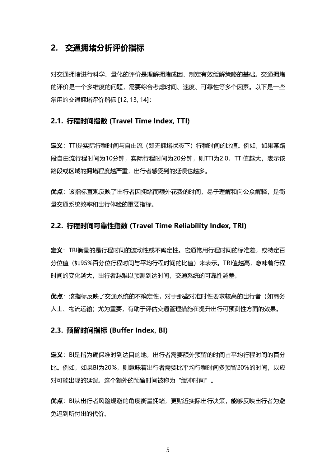 行程时间指数(TTI) 实际行程时间与自由流行程时间的比值 直观反映出行者额外耗时,衡量交通效率与体验