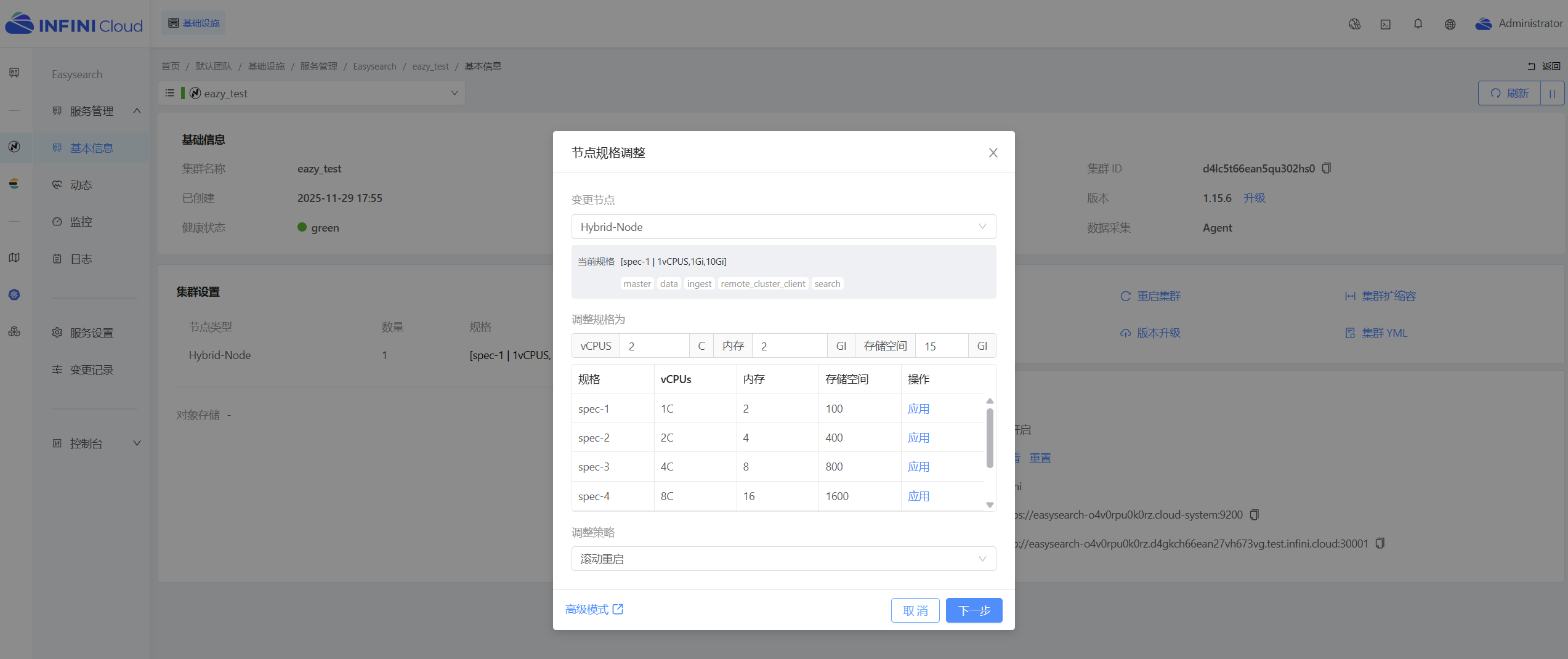 INFINI Cloud 节点资源调整
