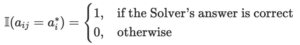 与拥有多种奖励组件的 Proposer 不同,Solver 的奖励只有正确性这一项。对于每个问题 q_i, the Solver 会生成 J 个候选解,其最终答案为
