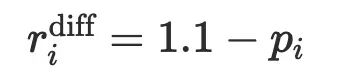通过率 p_i 越低,问题越难,奖励就越高。具体地,难度奖励为: