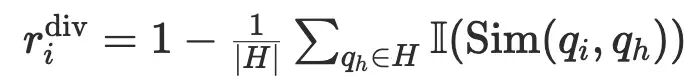 我们还希望避免退化现象,例如 Proposer 反复生成同一种类型的问题。为此,我们将新生成的问题 q_i 与历史缓冲区 H 中的最近问题进行比较,采用 Jaccard 相似度: