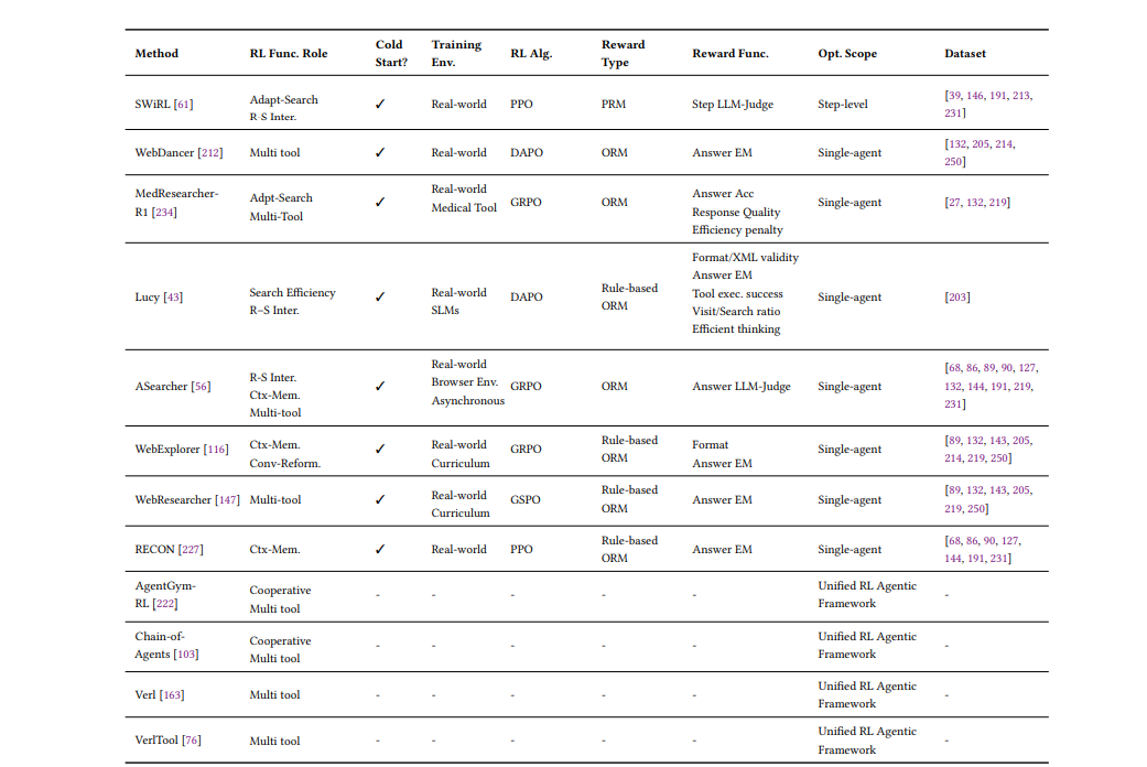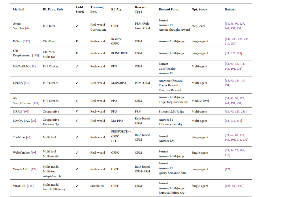 - 多模态搜索: MMSearch-R1, WebWatcher融合视觉与文本理解