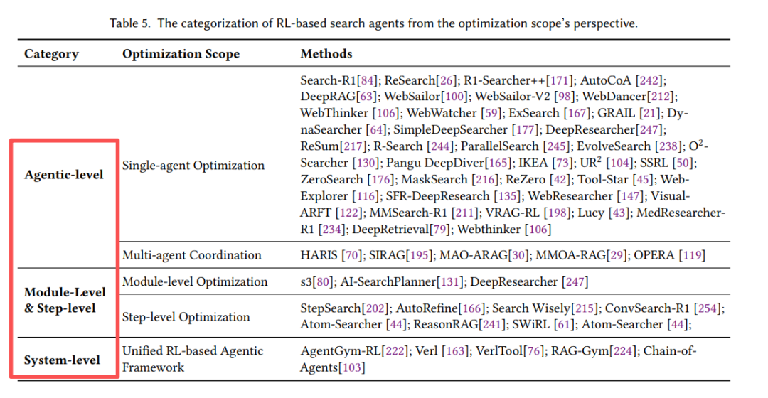 - Where RL is applied: 优化范围(Agent级/模块级/系统级)