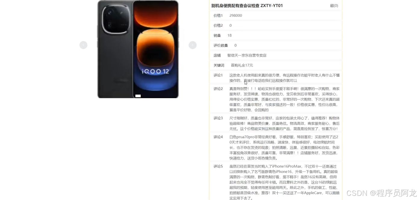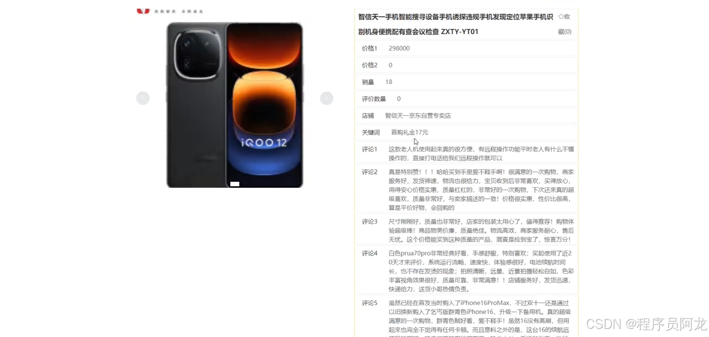 【摘要】本文介绍了程序员阿龙的技术服务内容与专业背景。作为拥有10W+粉丝的Java技术专家,阿龙提供包括毕业设计开发、论文辅导、答辩演练等一站式服务,涵盖SpringBoot、Vue、大数据等多个技术领域。文章详细展示了基于Hadoop生态的视频数据分析项目实现过程,包括环境部署(Linux+Hadoop3.3.5+Spark)、数据采集(Python爬虫)、系统测试等核心环节,并附有京东爬虫代