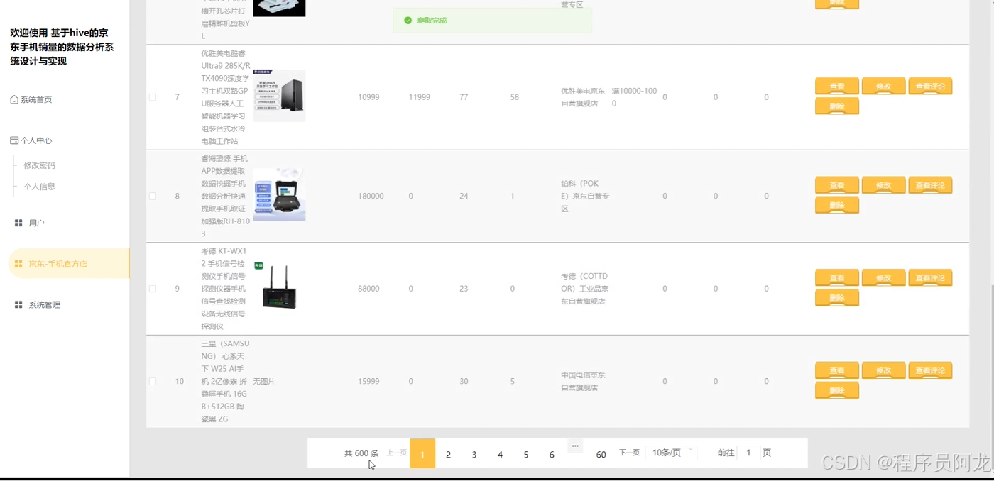 基于hive的京东手机销量的数据分析系统设计与实现(源码+定制+开发)