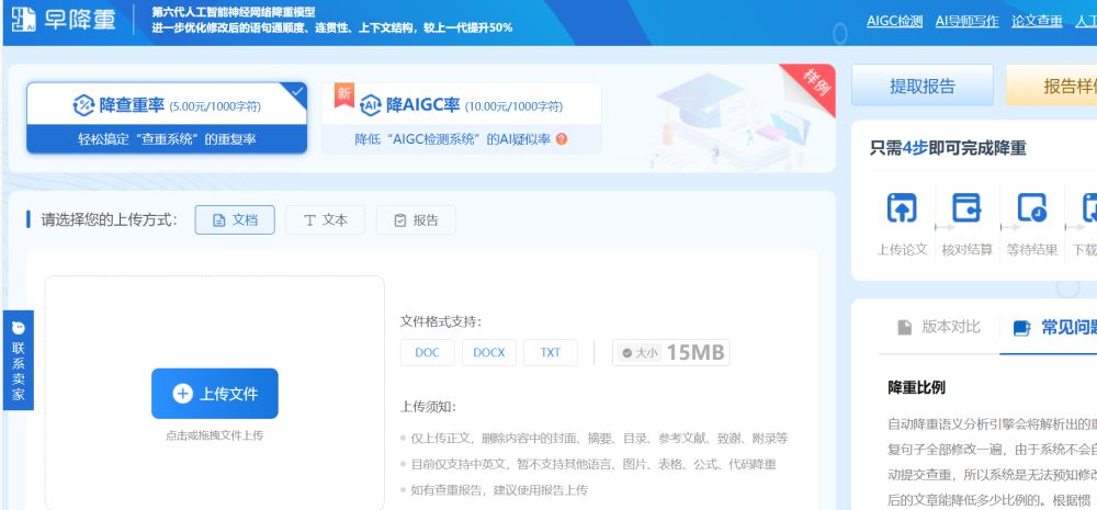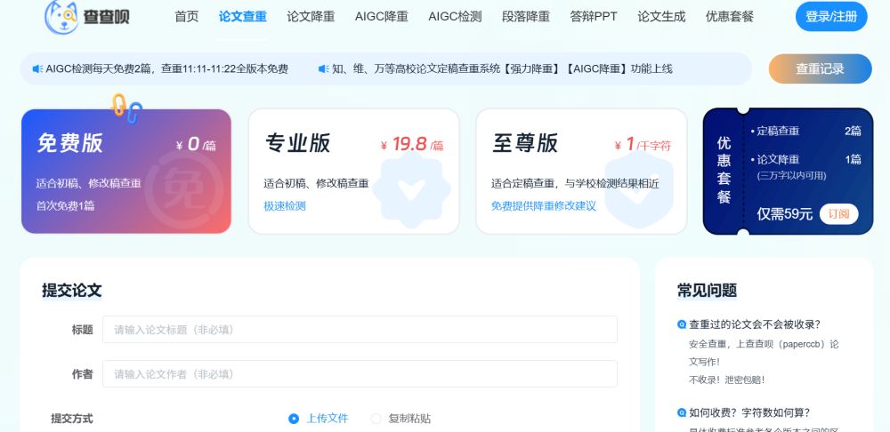 使用方法:访问官网,注册登录后点击 “上传长文”,上传完成后系统自动检测分析,查看检测报告,点击 “开始降重 / 降 AIGC” 按钮,处理完成后可在线预览或下载长文。