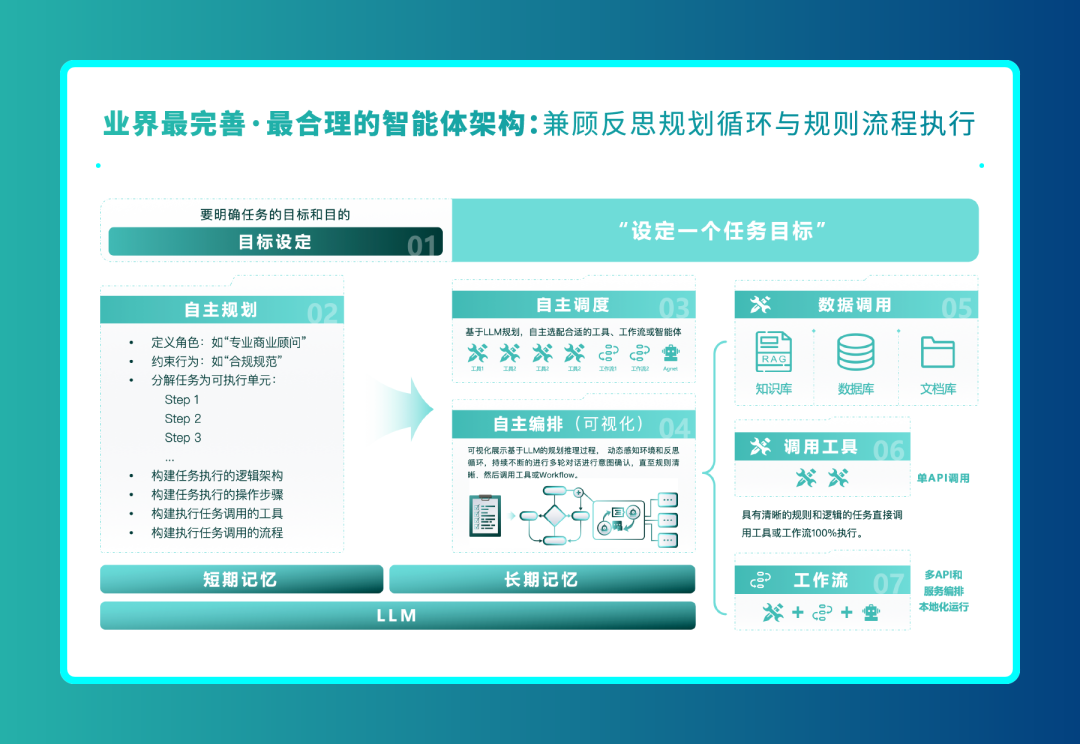作为智能体的核心,LLM承担推理、规划与语言生成的关键职能。基于大规模文本数据训练,它能理解复杂业务语义(如“优化供应链成本”背后的多层诉求),并生成连贯的决策逻辑。在财务场景中,LLM可解析年度财报的海量数据,输出“成本结构优化+现金流健康度评估”的综合分析报告,其认知深度远超传统BI工具。