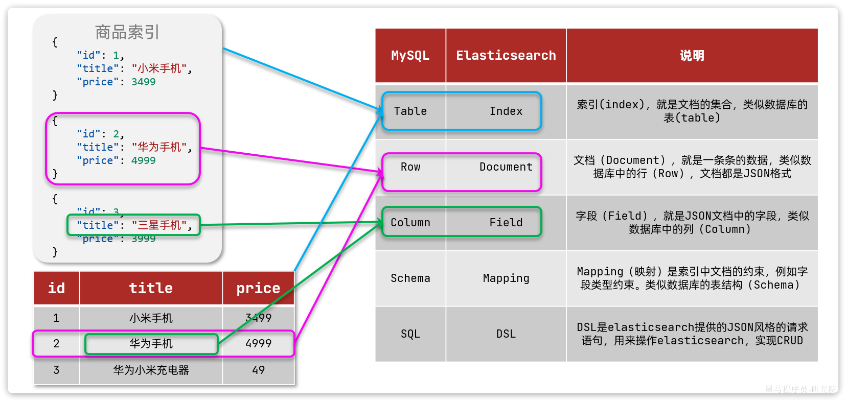 like '%手机%',需要找到title中包含手机的数据 - 2)逐条遍历每行数据(每个叶子节点),比如第1次拿到