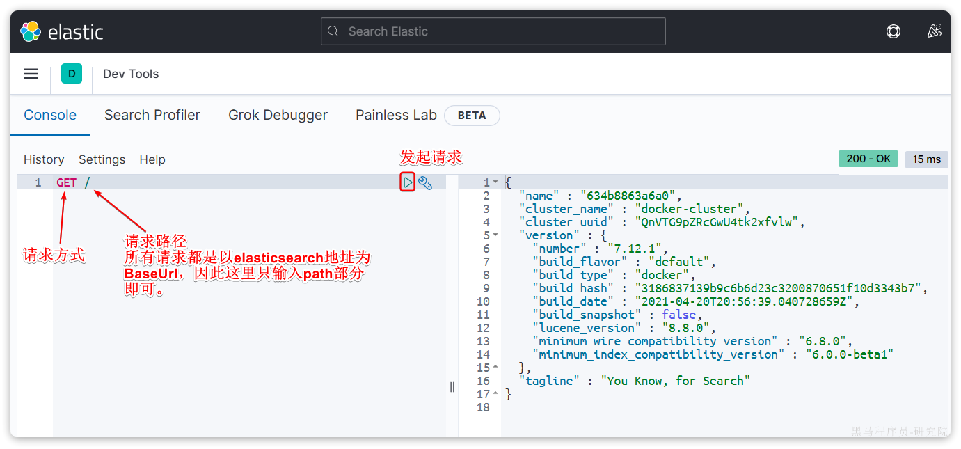 注意,这里我们采用的是elasticsearch的7.12.1版本,由于8以上版本的JavaAPI变化很大,在企业中应用并不广泛,企业中应用较多的还是8以下的版本。