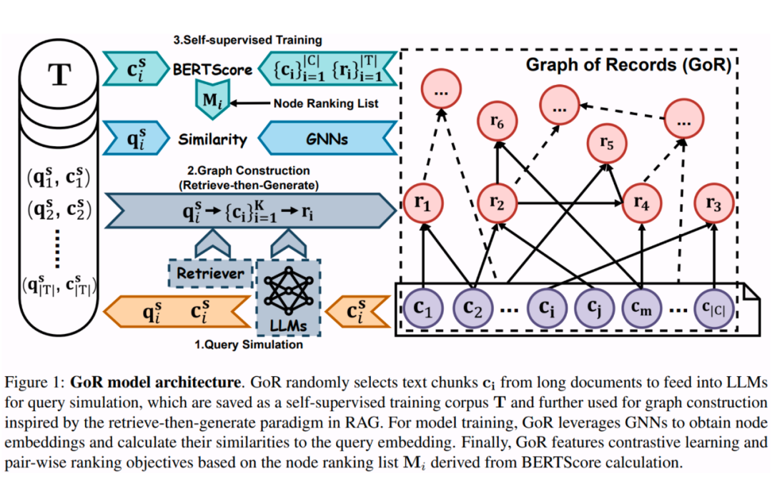GoR 摒弃了昂贵的人工标注,通过 BERTScore 计算节点(Chunk or Response)与参考摘要(Reference Summary)之间的语义相似度并据此对节点进行相似度排序,构建自监督信号。