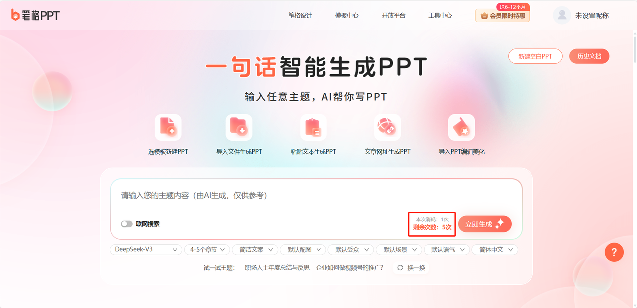 如果你预算紧张,比格PPT的每天5次免费生成必须冲! 操作同样简单:传论文→AI提炼重点→生成框架+模板。