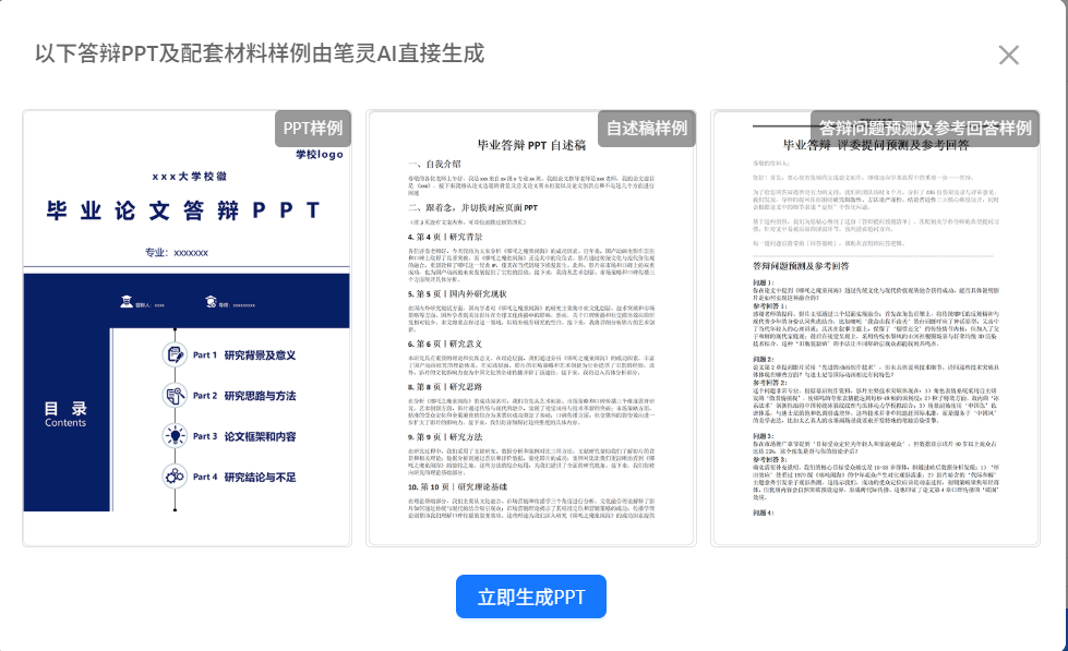 以前用AI做答辩PPT,槽点一堆:模板丑、内容乱、公式图表全消失……搞完还得自己改到吐血。 但现在不一样了!笔灵AI直接甩出王炸功能——一键生成PPT+演讲稿+预测答辩问题,全程只要3步!