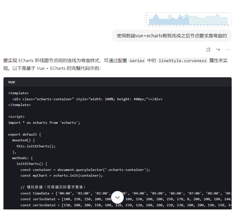 大家看到这种图大多数应该会先去打开echarts的官网先看案例有没有类似的获取,或者直接去看文档,我现在就会直接发给AI给他给我写哈哈哈哈