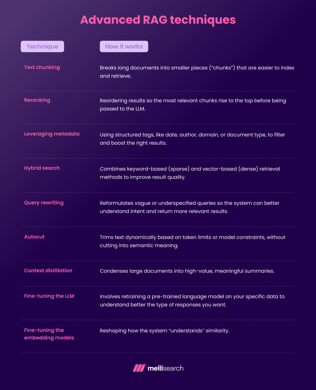 高级技术有助于你从“检索并希望”转向“有目的地检索”。它们解决了幻觉、延迟和内容不匹配等关键痛点,同时提高了准确性和性能。