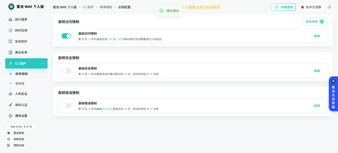 总之,雷池社区版不只是一款WAF,更是网站安全的可靠伙伴。它的高级能力让我在使用中感受到深度防护的魅力。如果你也想试试,别犹豫,赶紧部署吧!