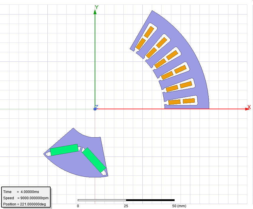 基于maxwell的6极36槽永磁同步电机(永磁直流无刷)模型,水冷,24.5kw, 绕组类型:分布式绕组,直流电压270Vdc,对6极 额定转速9000rpm,扭矩额定扭矩:输出扭矩不低于26Nm,效率:不低于95%,低速点转速:3000RPM,矩低速点扭矩:输出扭矩不低于3Nm,定子外径:120mm,求转子轴径:30mm,电机总长度:含绕组端部尺寸,最大长度不超过200m。重点来了——用Max