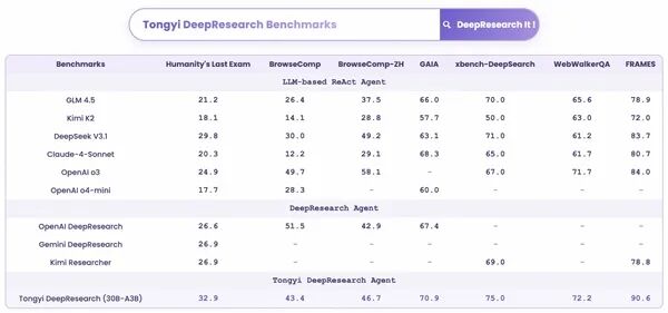 阿里开源旗下首个深度研究 Agent 模型:通义 DeepResearch!性能超 OpenAI、DeepSeek 旗舰模型