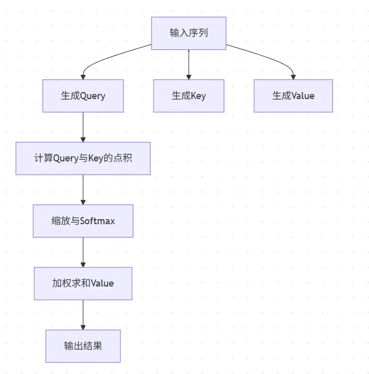 - 将输入映射为查询向量(Query)、键向量(Key)、值向量(Value);