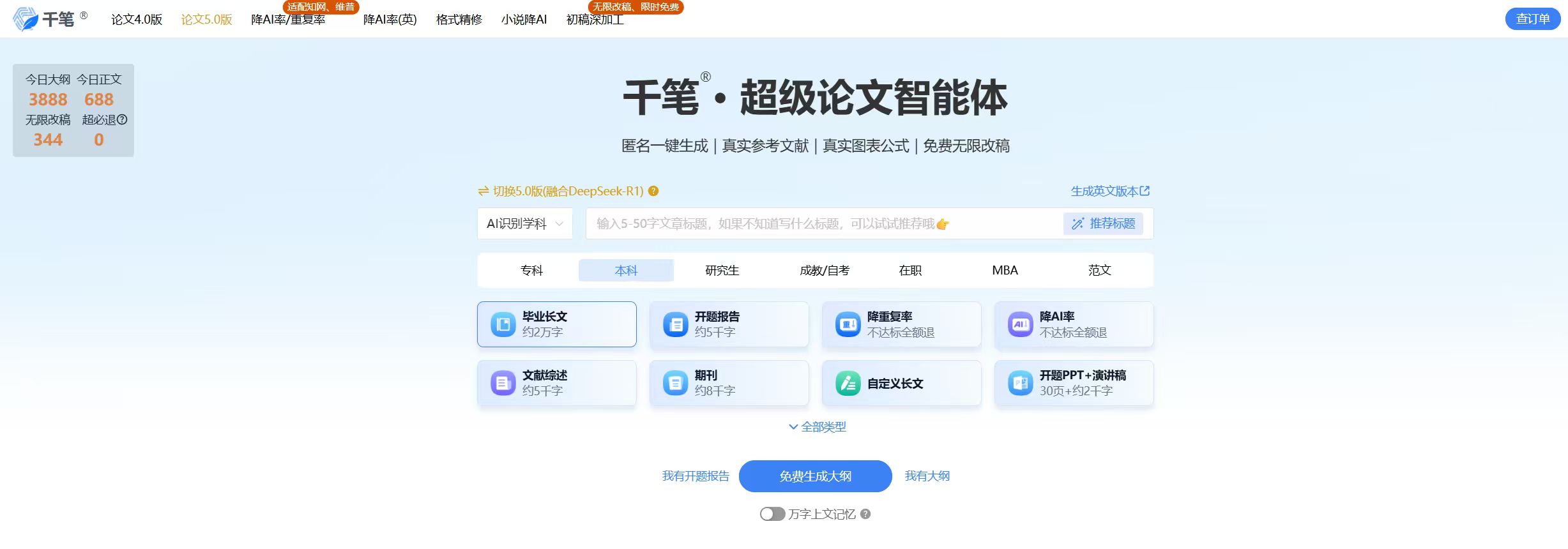 千笔是一款聚焦 “论文写作效率提升” 的轻量化工具,主打 “快速生成核心内容 + 碎片化写作支持”,通过智能算法简化论文写作流程,适合时间紧张、需要快速推进论文进度的学生,尤其在开题报告、文献综述、章节初稿撰写方面表现突出。