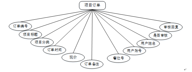 项目订单管理:订单编号、项目标题、分类、现价、订单时间、餐位号、用户账号、备注、审核、支付状态