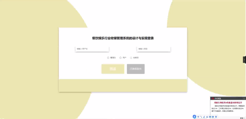 (3)收银员可以浏览主页了解餐饮娱乐行业收银管理信息,并进行查询;