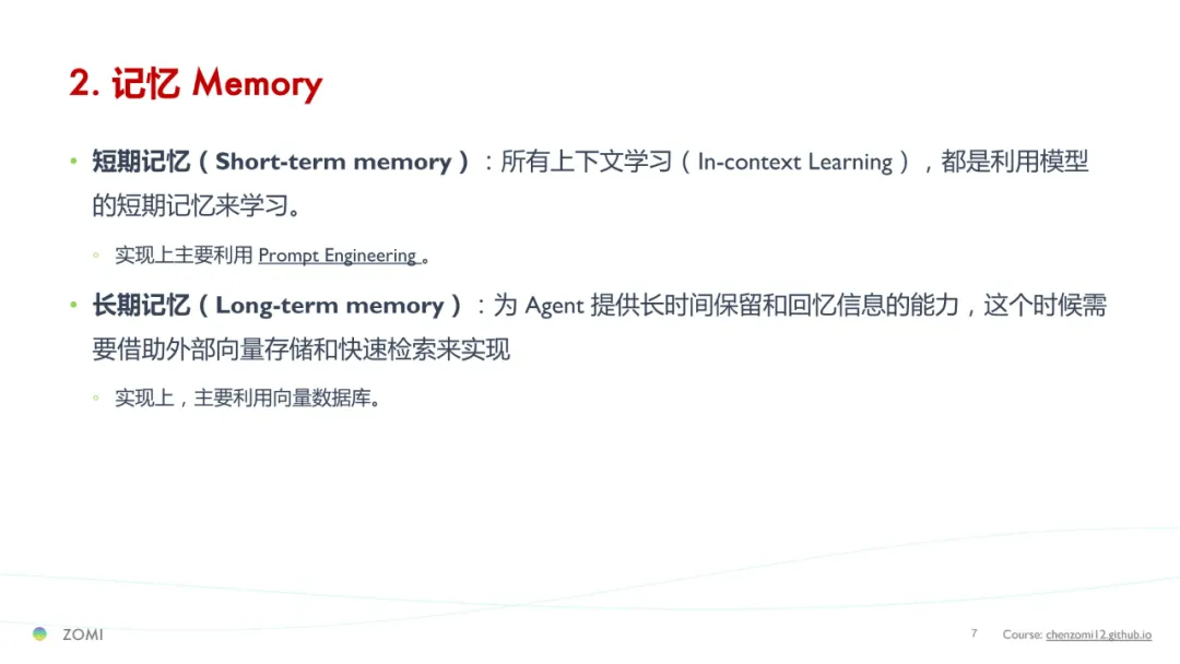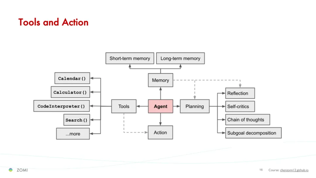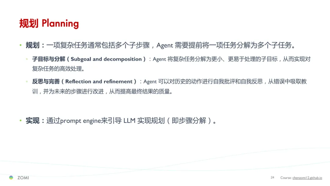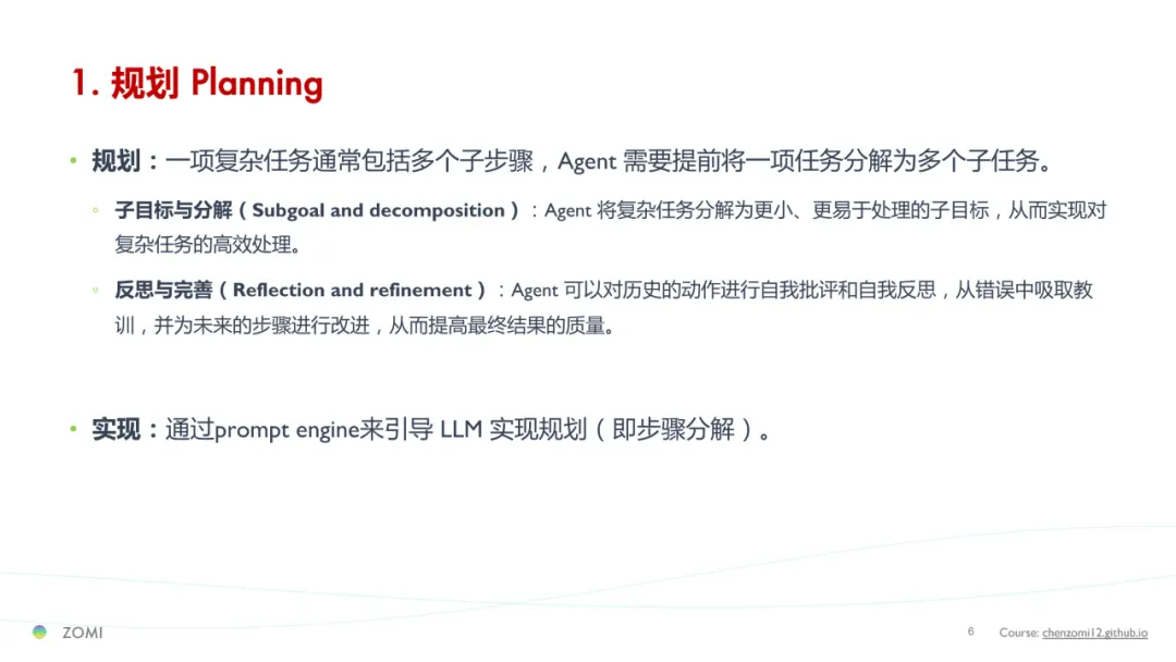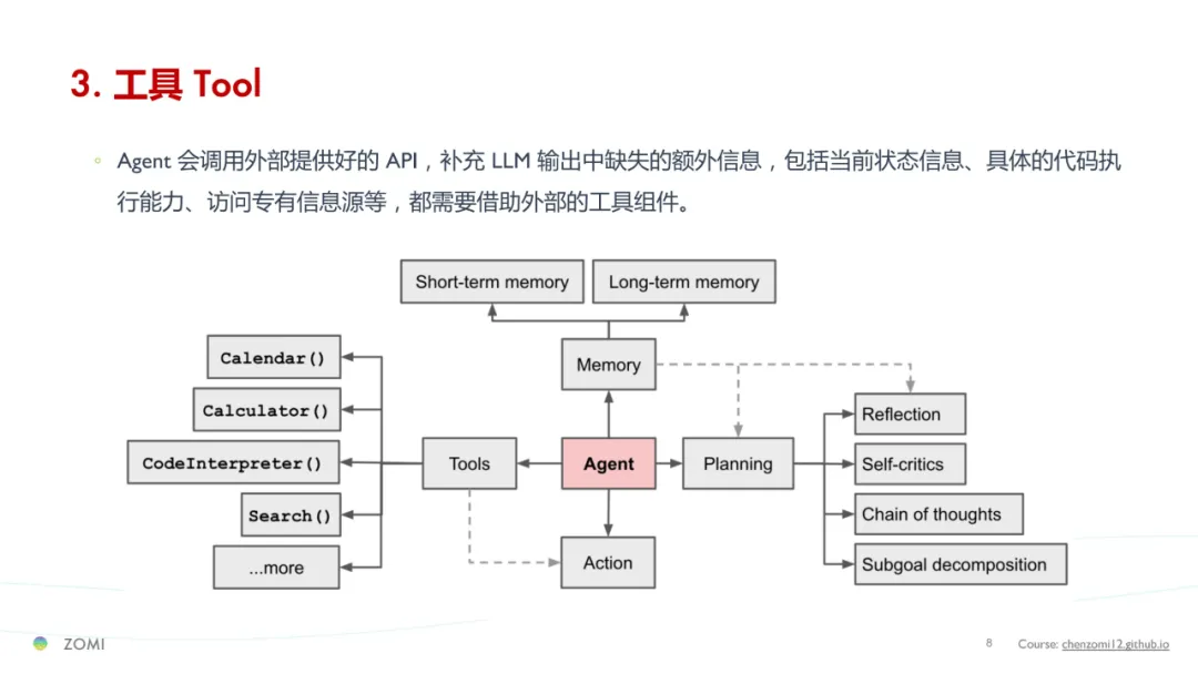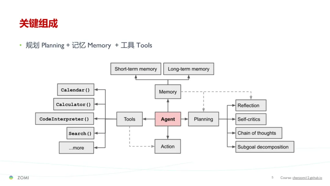 AI Agent 的核心能力由规划(Planning)、记忆(Memory)、工具(Tools) 三大模块支撑,三者协同实现复杂任务处理。