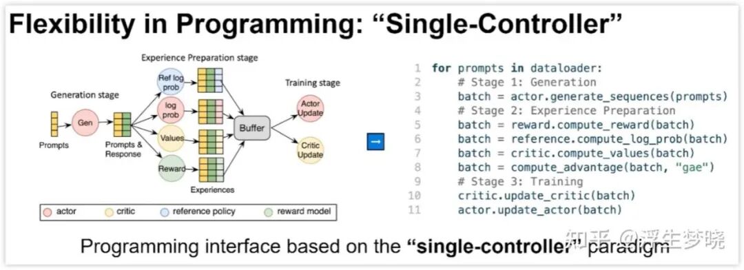 **2、**RL 训推分离的训练流程中的控制流还是在训练侧,也就是训练的控制流代码中。