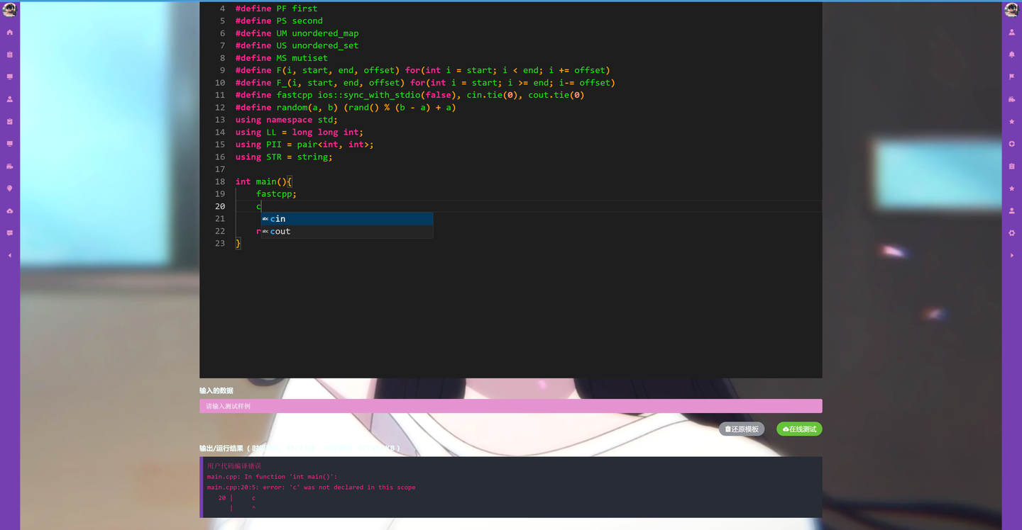 为了提升您的编程技能,平台还设有每日一题、精选题单以及激动人心的编程竞赛,这些都是备考编程考试的绝佳资源。更令人兴奋的是,您还可以自定义系统UI,选择视频或图片作为背景,打造一个完全个性化的编码环境,让您的编程之旅既有趣又充满挑战。