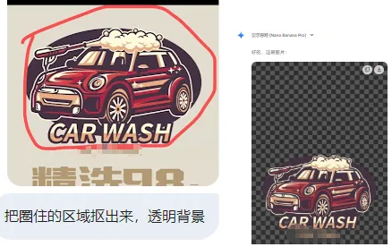 后面复盘,老婆看了下我的 Prompt,说我的流程有点问题,应该让 AI 先把素材全抠出来先,再慢慢组合。后面试了下,效果确实有好一些。不过,不得不说,AI 在 自动抠图 这块确实可以: