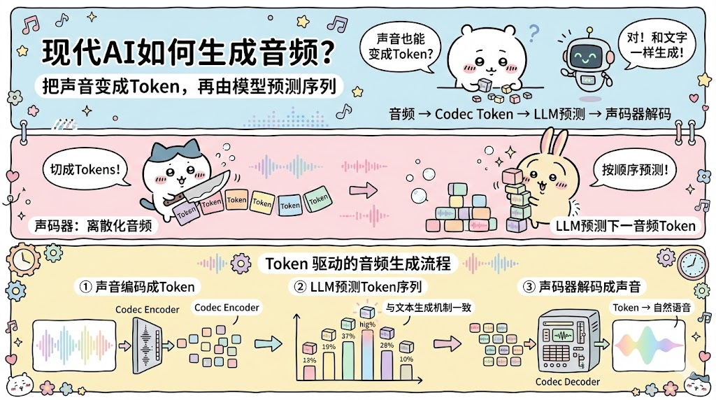 ③ 音频 (自回归模型 & Codec + Token 预测 )