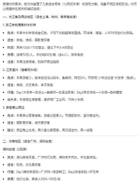 - ❌ 混乱说法:帮我计划个周末玩的地方。