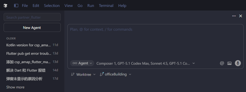 支持 **同一指令 **下,最多可 并行 (Parallel) 跑 8 个 Agent,每个 Agent 会在自己独立的 Git worktree / 沙盒工作区 内工作:各自改代码、build、跑测试,不会互相冲突 (🤡 就是费 Token…)。还多了一个 Plan Mode (先规划再执行),在 Agent 输入框 中按 Shift + Tab 可以切换到这个模式 (也可以手动选):