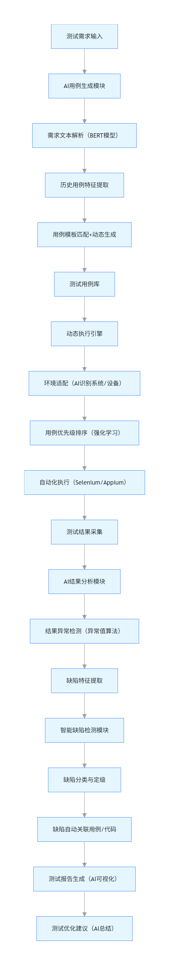 - 效果评估:建立 AI 测试效果评估指标体系(效率、准确率、成本),持续迭代优化。