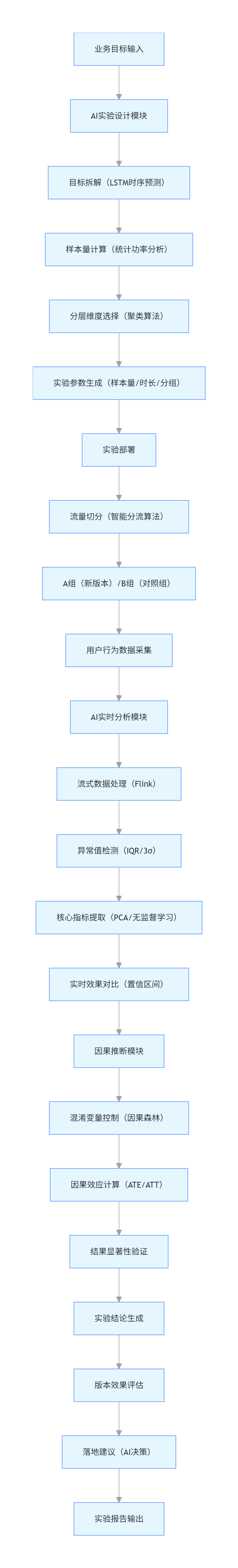 - AI 优化 A/B 测试:因果森林实现精准因果推断,智能实验设计优化样本量 / 分层 / 时长,实验决策效率提升 70%,核心指标提升率平均增加 15%。