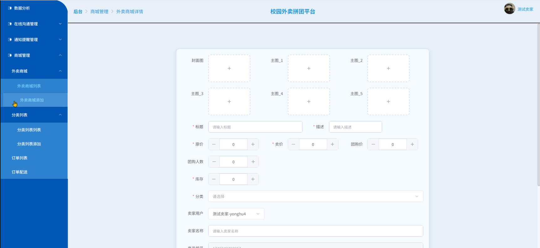 外卖商城添加功能测试 |