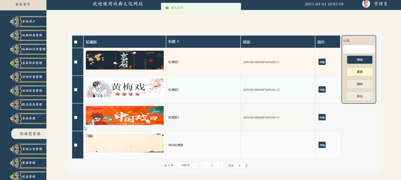 系统管理:上传和调整网站首页轮播图,吸引用户关注热点内容。