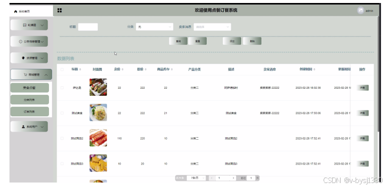 测试系统后台操作员对美食相关信息进行管理的功能是否正常 |
