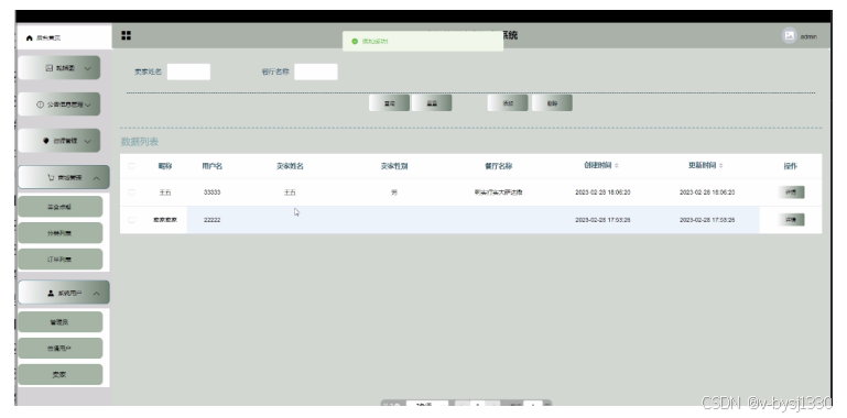 普通操作员登录,点击进入美食相关信息管理的页面 |